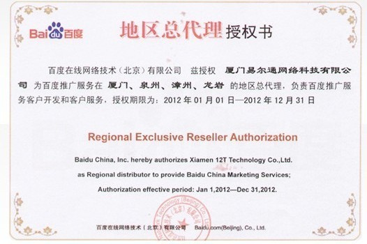 廈門易爾通網(wǎng)絡(luò)科技有限公司是百度閩南地區(qū)的總代理,其實(shí)很多人不知道。看了下面這張照片其實(shí)就已經(jīng)很明顯了,自2005年開始,易爾通就是廈門地區(qū)的代理了